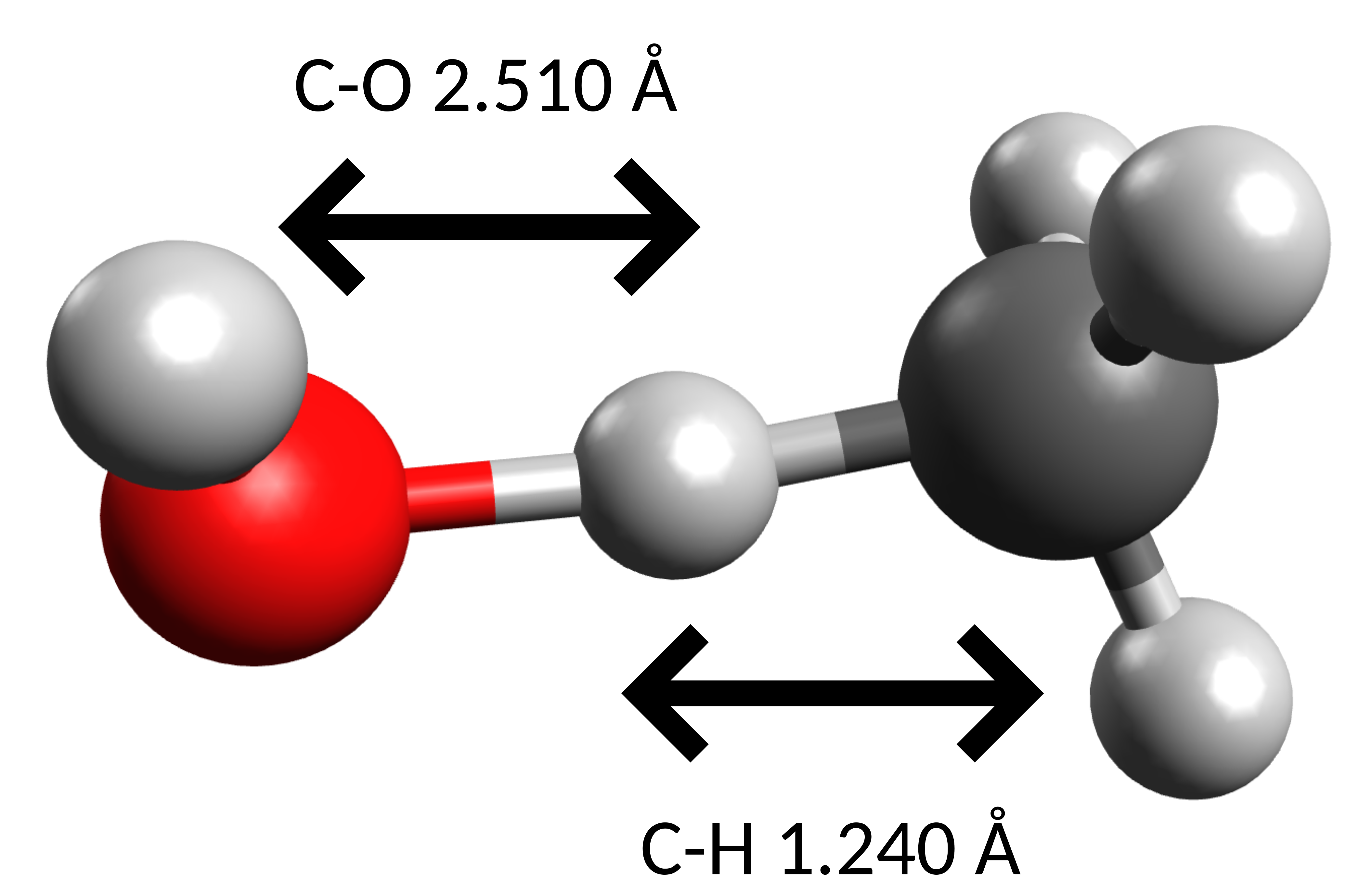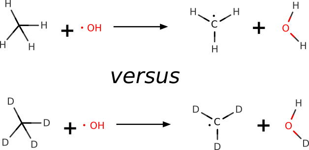 We can also use ORCA to make a quantum-mechanical prediction of the KIE, and use these to further investigate chemical reactivity. Let's try to predict the KIE in a H-atom abstraction of methane by the hydroxyl radical, that was measured with high accuracy in gas phase [Tully1993]: