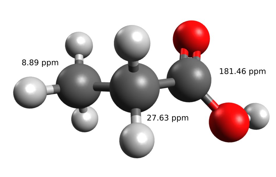 Lets first compute the C-NMR shifts for the propionic acid in chloroform, for which the experimental data can be found in the SDBS database: