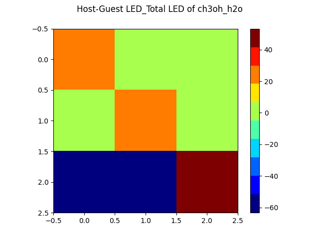 This will start the host-guest interaction workflow in WEASEL, specifically using the LED method to analyze the interaction energy between the host (methanol) and the guest molecules (two water molecules).