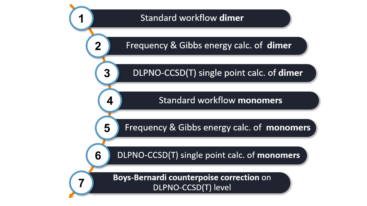 Step 3: A DLPNO-CCSD(T) single point energy calculation on the dimer is conducted. This high level calculation gives us accurate energy values for the dimer system.
