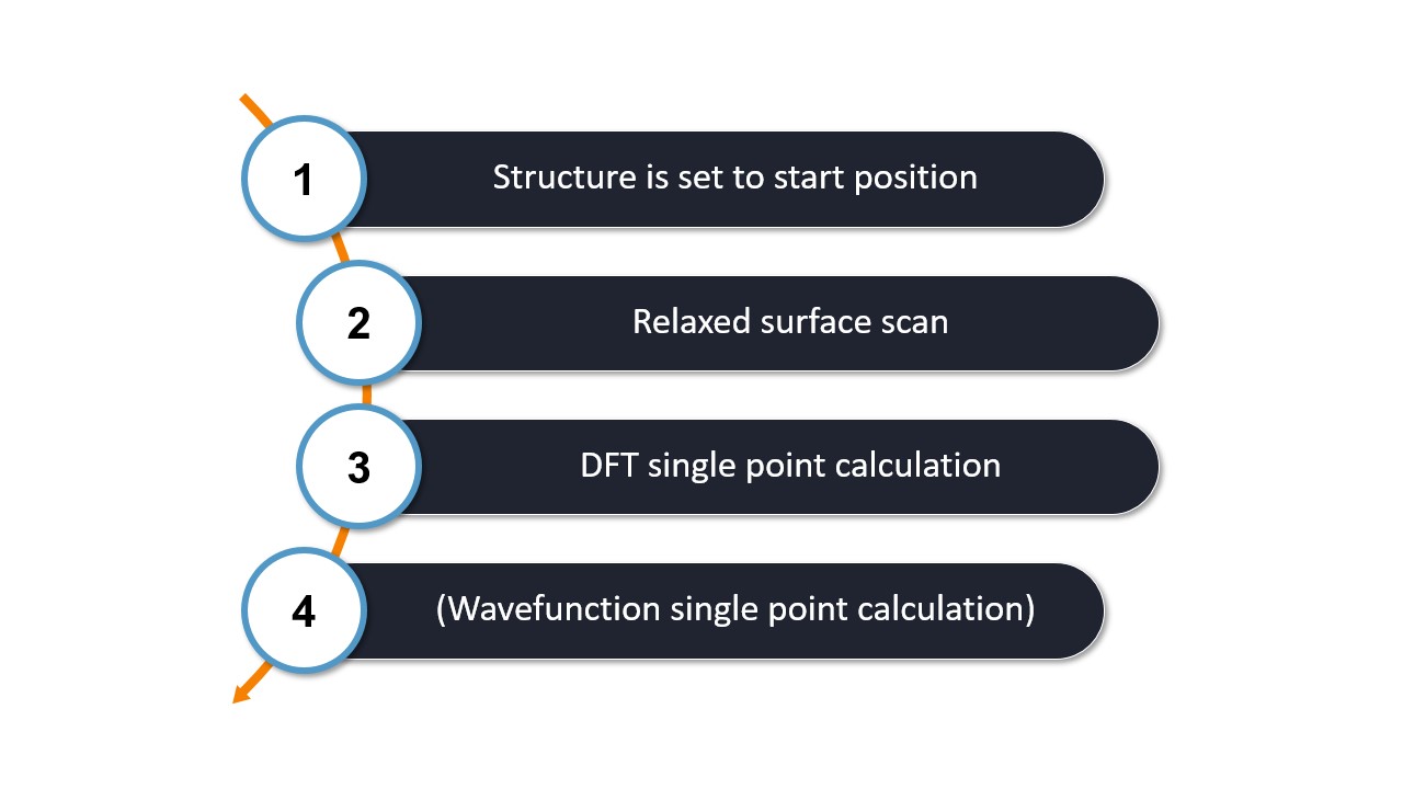 -scan-start 60and the stop angle to 180° with-scan-stop 180.For a more accurate energy surface, perform a wave function calculation by adding the