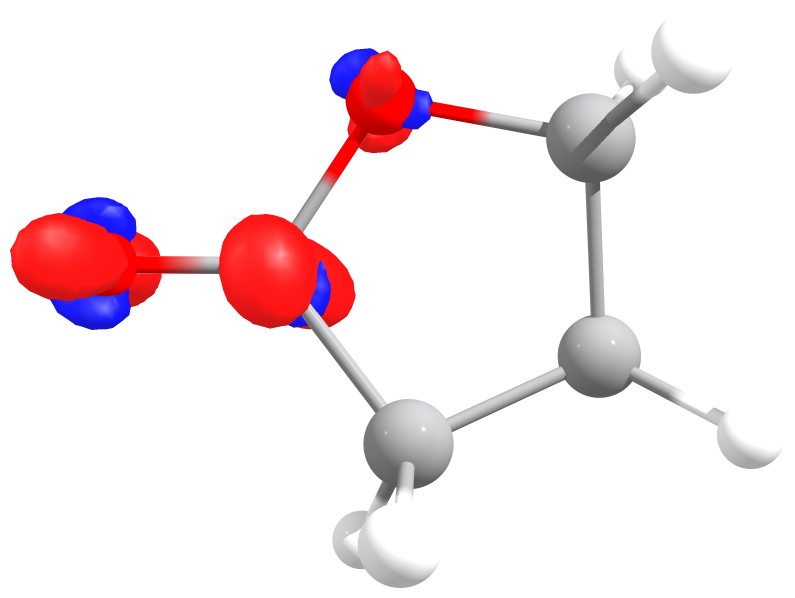 Fukui f- function of butyrolactone. The red isosurface shows positive